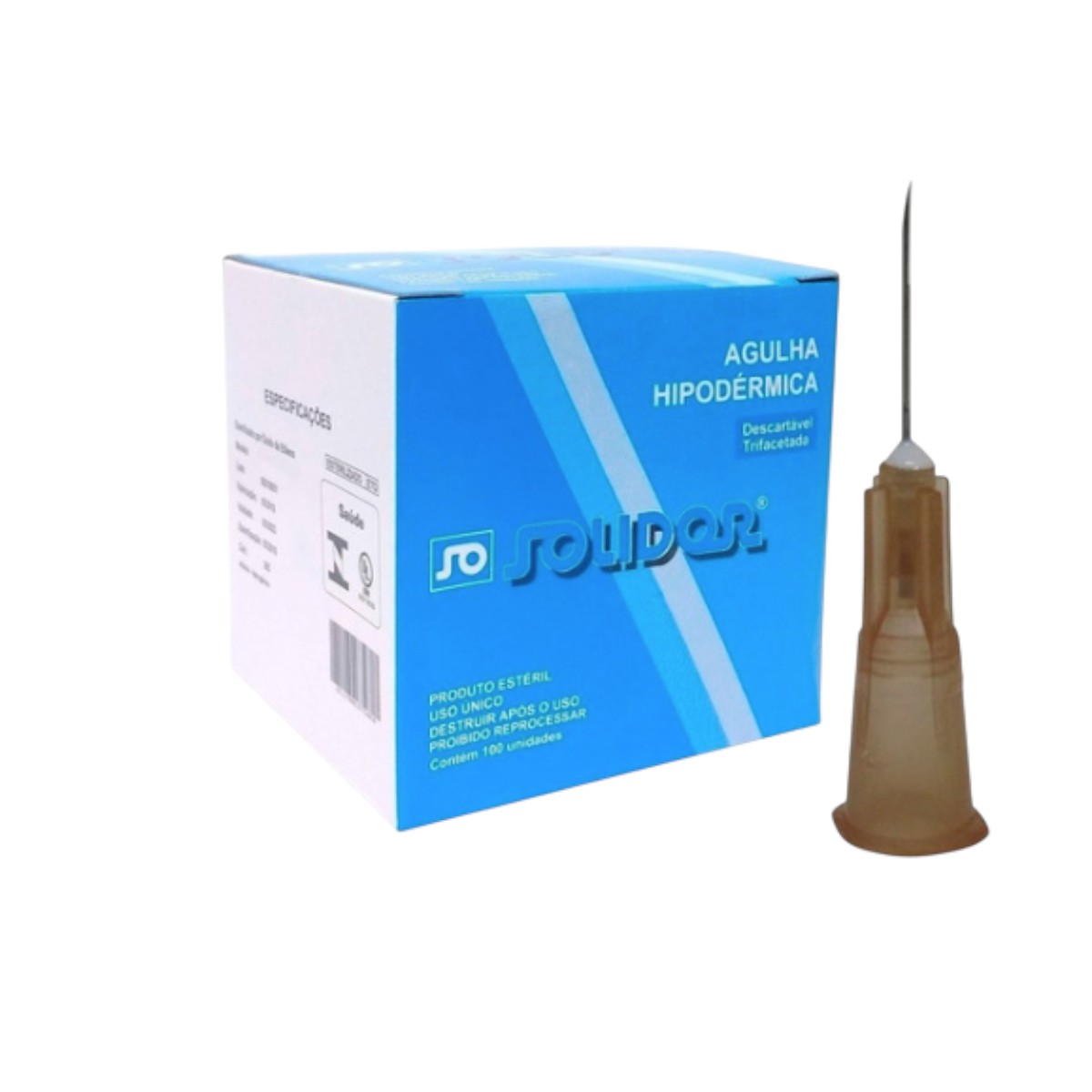 1x Caixa com 100 Agulhas 13 x 4,5 mm 26G 1/2" – Solidor